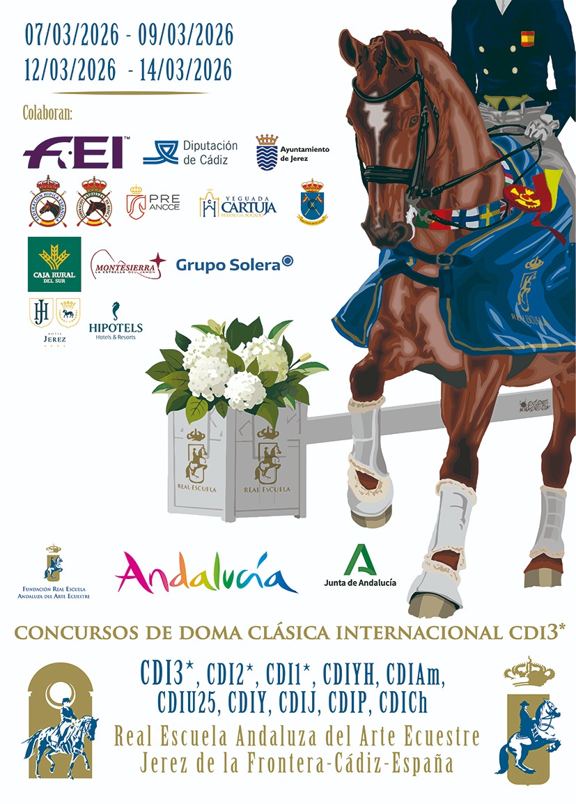 La Real Escuela Andaluza del Arte Ecuestre acogerá la celebración de los Concursos Internacionales de Doma Clásica (CDI) que se celebrarán en sus instalaciones entre el 6 y el 14 de marzo. El 6 y 11, respectivamente, se realizarán las correspondientes inspecciones veterinarias.